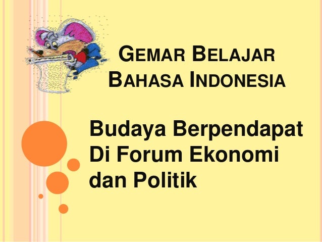 - 1. GEMAR BELAJAR BAHASA INDONESIA Budaya Berpendapat Di Forum Ekonomi dan Politik